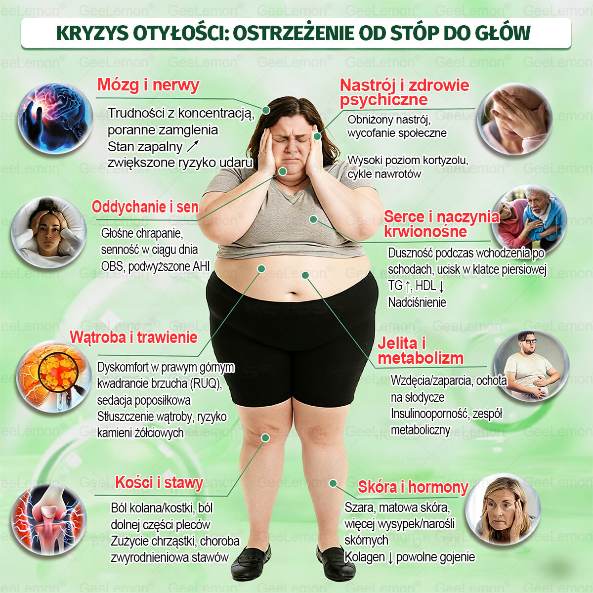 Wielu uważa, że nadwaga dotyczy jedynie wyglądu — ale w rzeczywistości po cichu zagraża Twojemu zdrowiu. Tłuszcz brzuszny może uciskać serce i płuca, sprawiając, że każdy oddech i każdy krok stają się cięższe. Może zatykać tętnice, zwiększając ryzyko zawału serca lub udaru. A z roku na rok to obciążenie przyspiesza starzenie, osłabia narządy i odbiera energię potrzebną do życia pełnią życia.