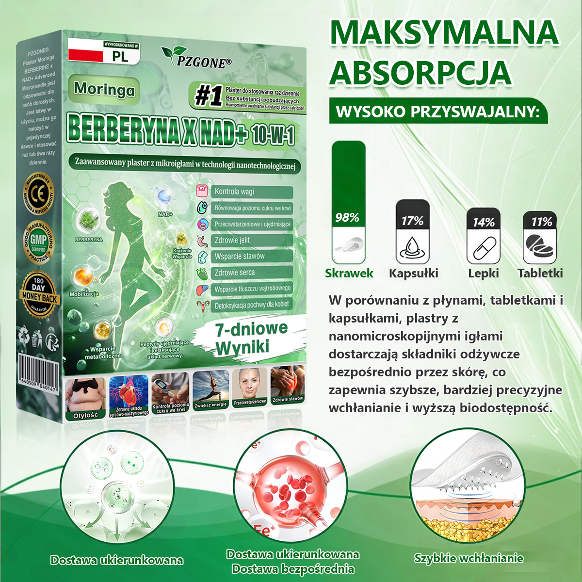 𝐏𝐙𝐆𝐎𝐍𝐄® 𝗠𝗼𝗿𝗶𝗻𝗴𝗮·𝗕𝗲𝗿𝗯𝗲𝗿𝗶𝗻𝗲×𝗡𝗔𝗗+ 𝟭𝟬‑𝗶𝗻‑𝟭 Smukły i Zdrowy Nano Plaster z Mikroigłami: 98% skuteczności wchłaniania, kompleksowa transformacja kontroli masy ciała oraz zdrowia wątroby, jelit i skóry